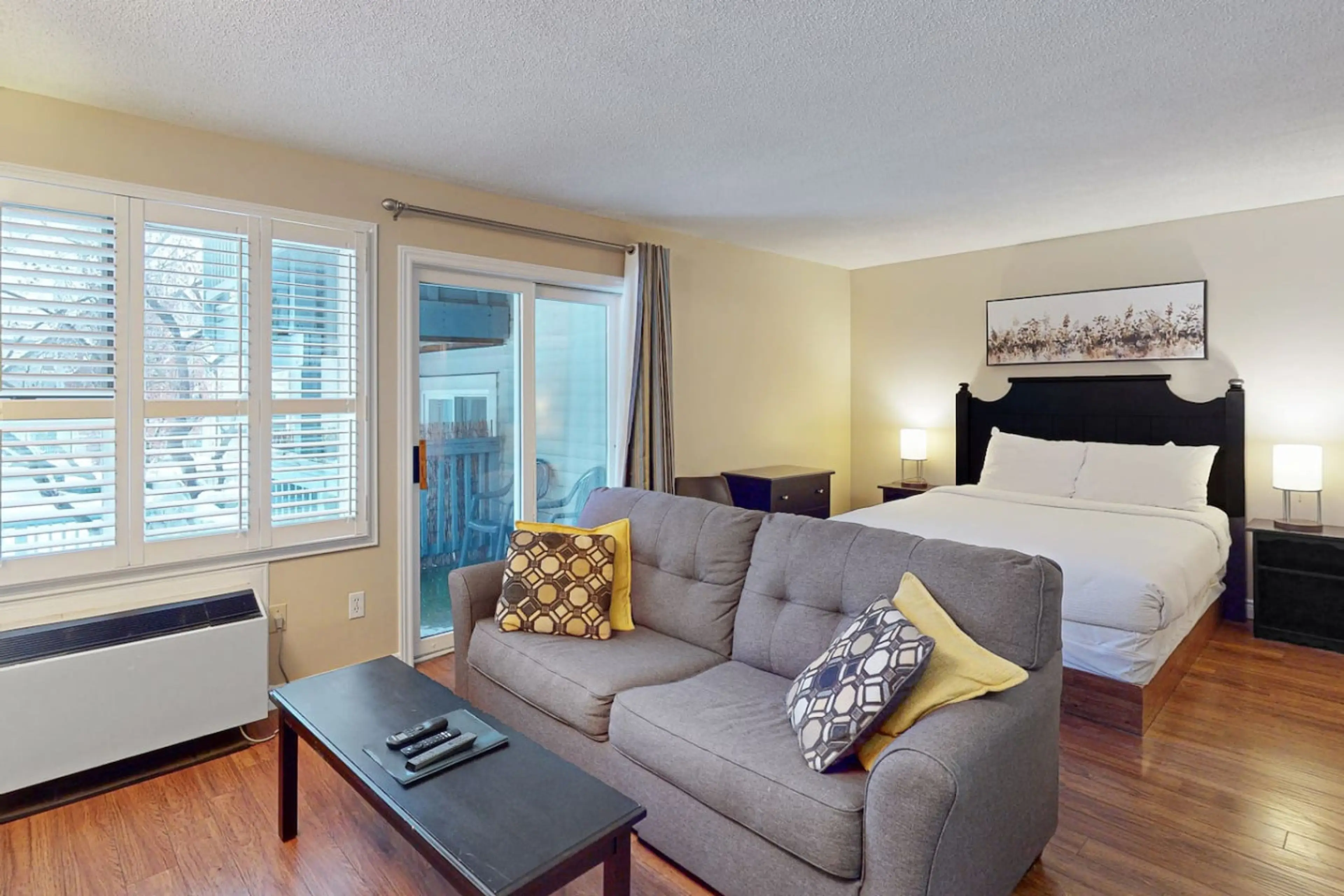 Discover Blue Mountain in this ground-level North Creek condo. This studio puts you steps from the North Chair Lift and seasonal amenities like the pool, hot tub, and tennis courts. Enjoy a queen bed and double sofa bed, plus a full kitchen with a drip coffee maker (bring filters!). Whether skiing, ...